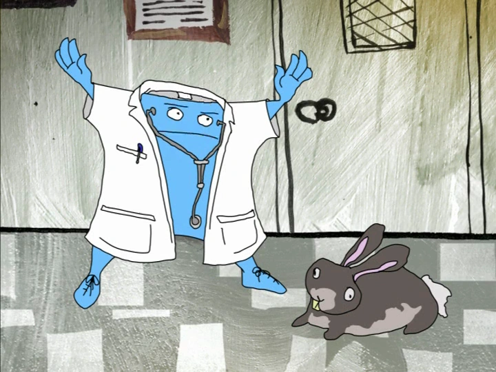 Later on, he smashed the dead rabbit's eye with a hammer, determining that "this rabbit's been hit by a hammer". He paged Dr. Bug to have a look at the rabbit, then had him analyze the purple smoke. Jerry made the connection that Dr. Bug was related to the Cuylers, but he was quickly told to shut up as Dr. Bug did not want to be associated with his family.