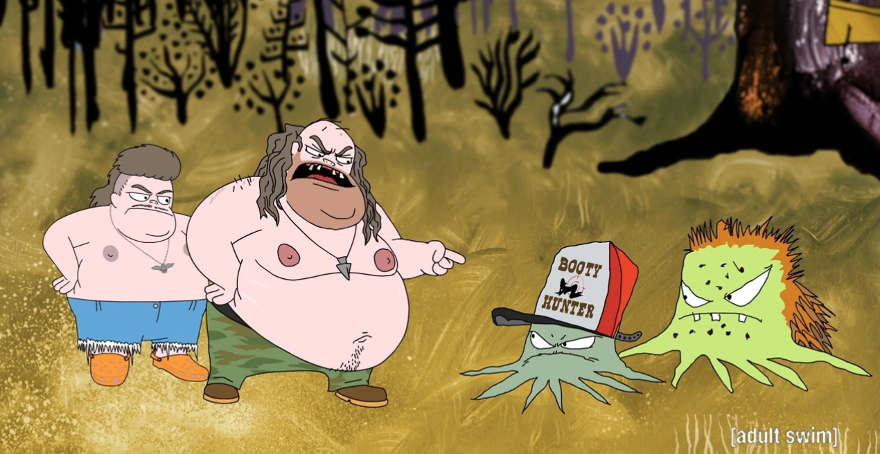 "Duel of the Dimwits" is the eighth episode from the eleventh season of Squidbillies. It first aired on December 3rd, 2017 on Adult Swim.