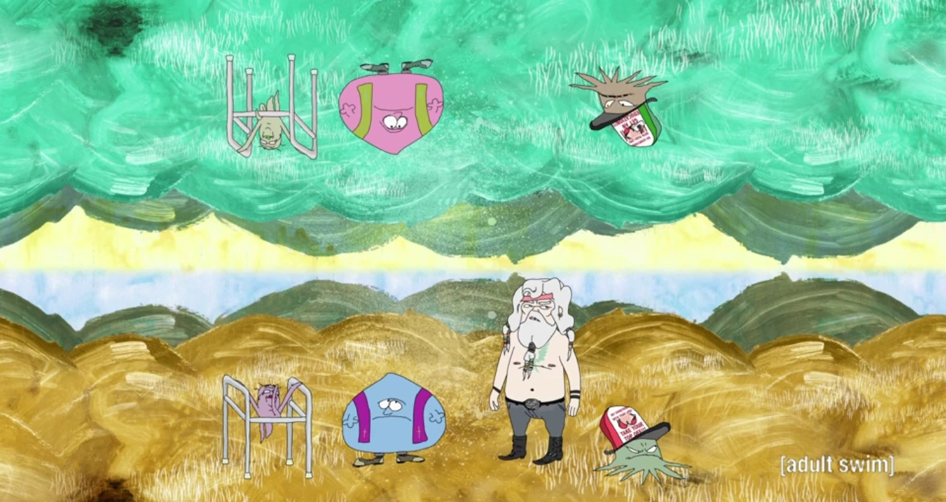 God's Bro and the Reverend along with others watch Kirk Cameron's movie as he summons and kills Kirk Cameron. He later gives Rusty a police car that he breaks and calls it a "slightly used trooper cruiser", kills the sheriff, and then shows Lil his Harley. The two are having a great Time but then the stepbro starts crying and yells "why don't you love me. dad?!" as the world explodes.