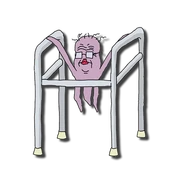 She is prone to becoming confused about her current situation and whereabouts due to her extreme senile dementia. Granny is also a nymphomaniac who propositions most of the series' characters for sex at one point or another. It is also implied that she has an incestuous relationship with Lil (also apparently without consent)[3], and has encouraged Rusty to scratch her genitalia. She suffers from various health problems, including a failing gallbladder[4], but doesn't die which could be due to her repeated attempts to hit-on Squid Jesus[5], who at one point ordered angels to restore her to life just so he wouldn't have to deal with her or her unwanted advances[6]. She is apparently a published author of the book "E Is for Equine", which made a brief appearance in the episode "Giant Foam Dickhat Trouble". Her holographic fantasy is killing herself with a shotgun and being buried in the cemetery. She is currently married to Dewey Duvall of the Duvall family by the end of the eleventh season[7].