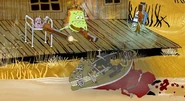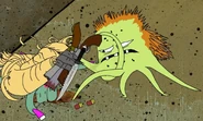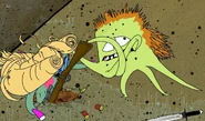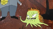 - The green orb throwed by the aliens' UFO to blow up and burn the Cuyler House and the land of Dougal County, which turns into a large golf course, is taken from another alien themed episode, which is "Bubba Trubba", albeit green instead of red.