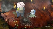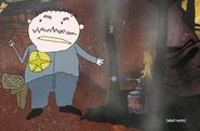 Sheriff investigates the origins of fire, and its role in the burning of the squids' house.