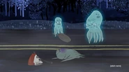 The final part of the episode shows the night of the North Georgia mountains where the Narrator then stated that this show was called "Squidbillies", as the logo appears onscreen, and the credits start, a crow can be seen flying in the night sky as the credits continue, as the screen lastly shows the night sky and the moon, thus ending the series.