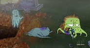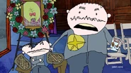 Off in the distance, Sharif and Denny are seen in their police car, with the car's siren wailing, which also stops, with the latter asking the former if they should do something or not, the former states that they're doing something, which is letting Rusty and his family have a life. Early then wakes up and states that they're were getting away and asks to call in a air strike from the Jewish space lasers before being hit by the ghost of Granny again with the same old frying pan, who states that he usually says some version of "ow" when he does that, similar to earlier, Ga Ga floats from the skies and heads toward her to tell Ruby to let him knock the stuffing out of him one time, which she agrees with but she told him "Don't hit him too hard" as she didn't want him up here with them, Ga Ga then clangs the injured Early with the frying pan while he says that she said "us", and told her to let him and her wail on him together as they both clang him with the frying pan together, while Granny states that ghosts can't get pregnant, and Ga Ga responds with "But who says we shouldn't try?", and both laugh, Sharif then organizes the police car's mirror and tells Ruby Jean to rest in peace and calls her "sweetie", as Sharif and Denny drive away from Early's injured body.