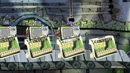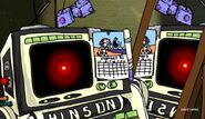- When the Super Computers are talking other people, and their computers, a bunch of weird people can be seen. These people are recycled from the audience from "Double Truckin' the Tricky Two". The same audience is seen again.